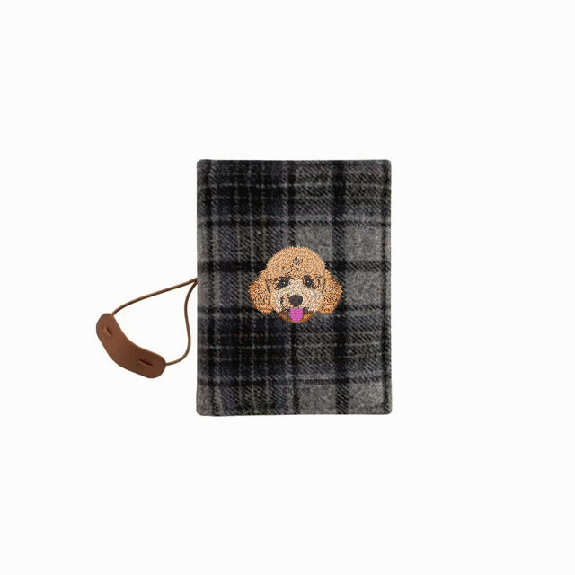 A7サイズ ウール調システム手帳カバー 無地リフィル付き オーダーメイドペットポートレート刺繍