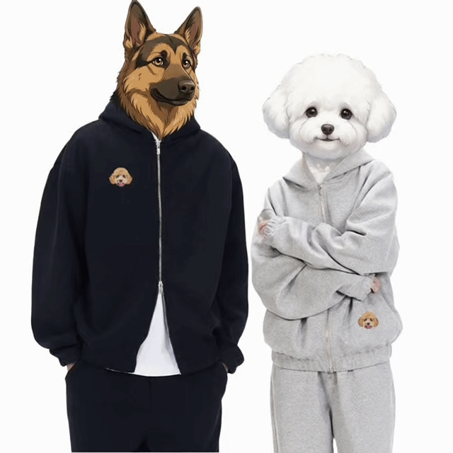 綿混ダブルジップパーカー&パンツセット オーダーメイドペットポートレート刺繍