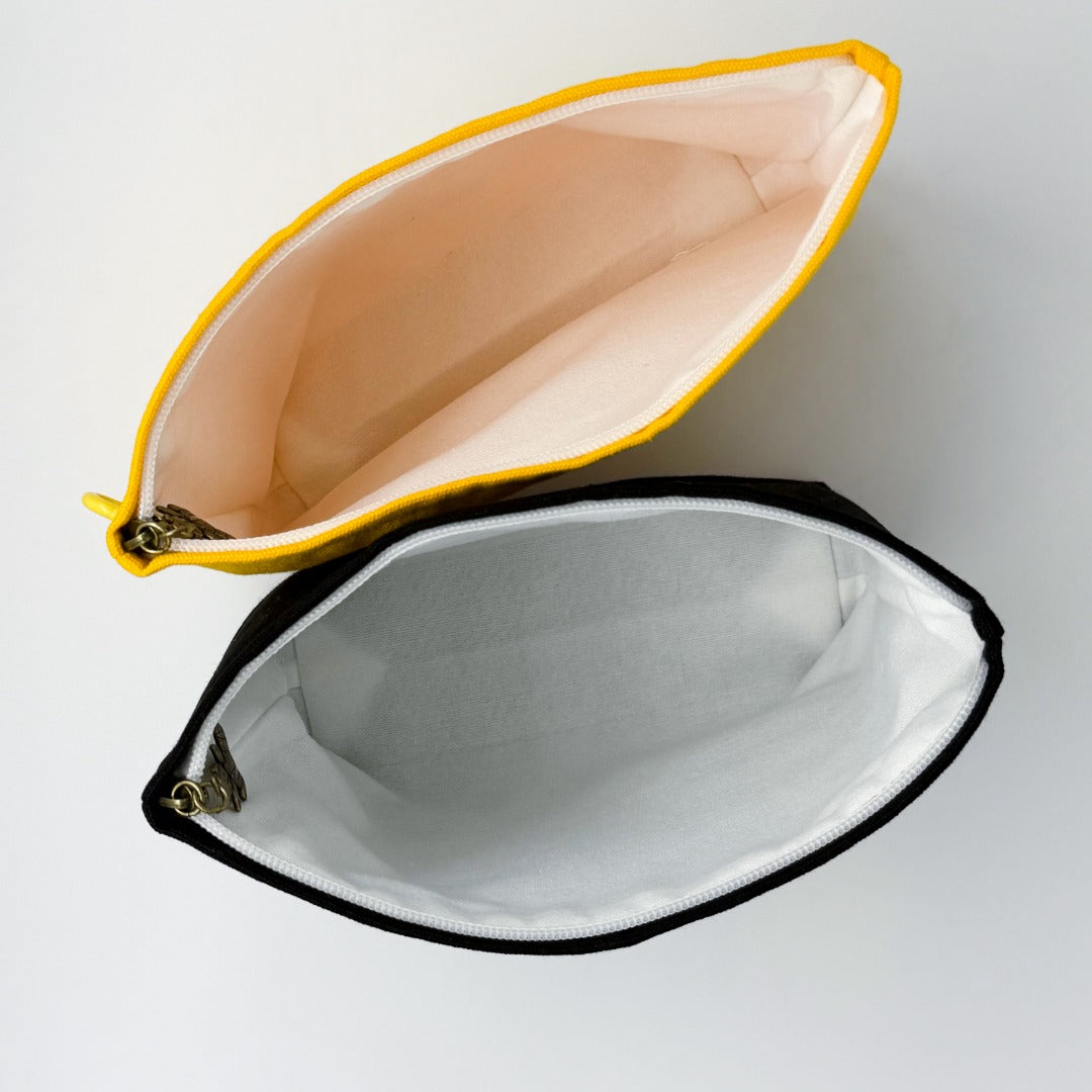 丈夫な綿100%のキャンバス生地を使用した、収納力抜群のポーチです。化粧ポーチ、ガジェットケース、トラベルポーチなど、多用途に使える万能なサイズ感。開閉がスムーズなファスナーを採用し、大切な小物をしっかりと守ります。